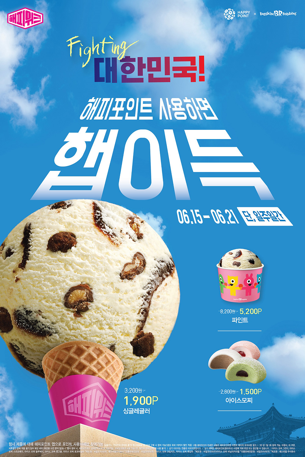 이번 프로모션은 해피포인트 어플리케이션(이하 해피앱) 이용 고객 대상으로 마련됐다. 오프라인 매장에서 해피앱의 바코드를 찍어 고객이 보유한 포인트로 전액 결제하면 최대 46%의 혜택을 제공한다. ‘싱글레귤러(3,200원)’는 1,900포인트에, ‘파인트(8,200원)’는 5,200포인트에, ‘아이스 모찌(2,800원)’는 1,500포인트에 구매 가능하다.