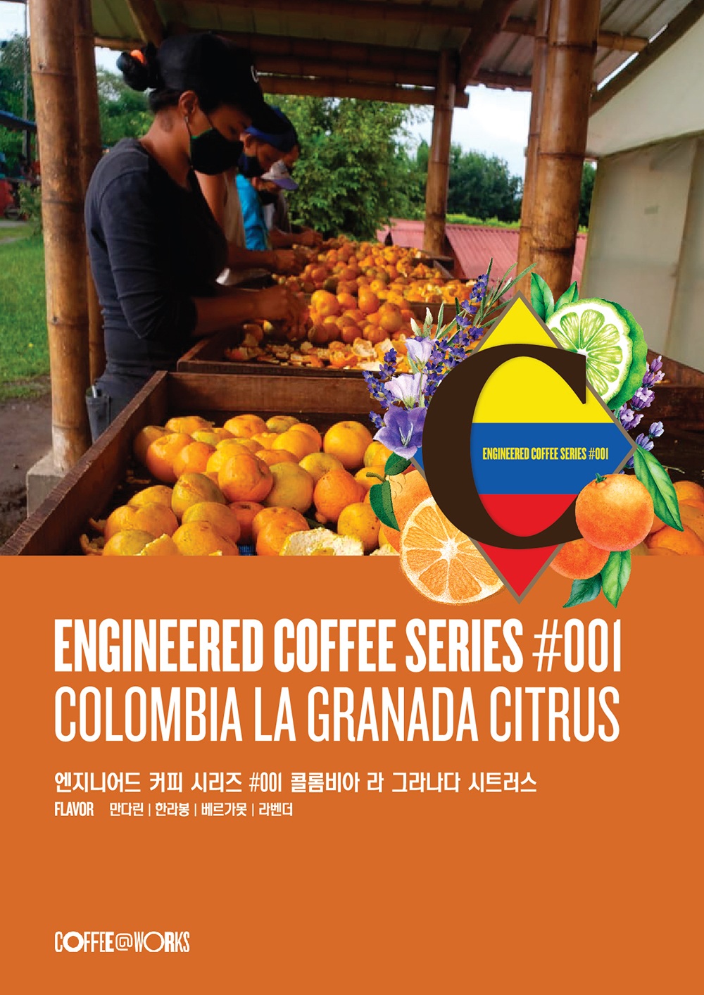 이번에 선보이는 ‘콜롬비아 라 그라나다 시트러스’는 ‘엔지니어드 커피 시리즈’의 첫 번째 커피로, 콜롬비아 킨디오 주 피자오에서 수확한 커피 체리에 산소가 차단된 공간에서 장시간 발효하는 무산소 발효 가공을 적용했다. 특히, 48시간의 발효 과정에 만다린 과육을 더하고, 이어지는 건조과정에서도 만다린 오렌지 껍질을 함께 두는 방식을 통해 만다린, 한라봉, 베르가못 등의 향미를 내는 것이 특징이다.