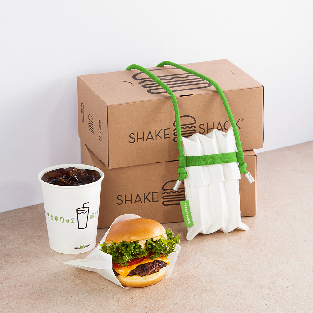 쉐이크쉑은 지속가능한 환경을 추구하는 친환경 패션 브랜드 ‘플리츠마마’와 손잡고 이번 굿즈를 출시했다. ‘플리츠마마’는 폐페트병 등 폐자원을 재활용해 제품을 제작하며, 가치 소비를 제안하는 패션 브랜드이다. 쉐이크쉑 ‘플리츠 나노백’은 플리츠마마의 시그니처 디자인인 플리츠 주름 모양과 쉐이크쉑을 연상시키는 ‘그린’컬러의 스트랩이 특징이다.