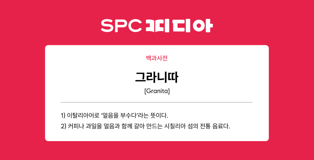 5월의 맛있는 단어는 ‘그라니따(Granita)’입니다. 이탈리아 시칠리아 섬 주민들의 여름철 대표 디저트이자 브리오슈 빵과 함께 아침식사로 즐기는 음료 ‘그라니따’. 다가올 무더운 여름을 책임질 그라니따에 대해 알아볼게요!☀️