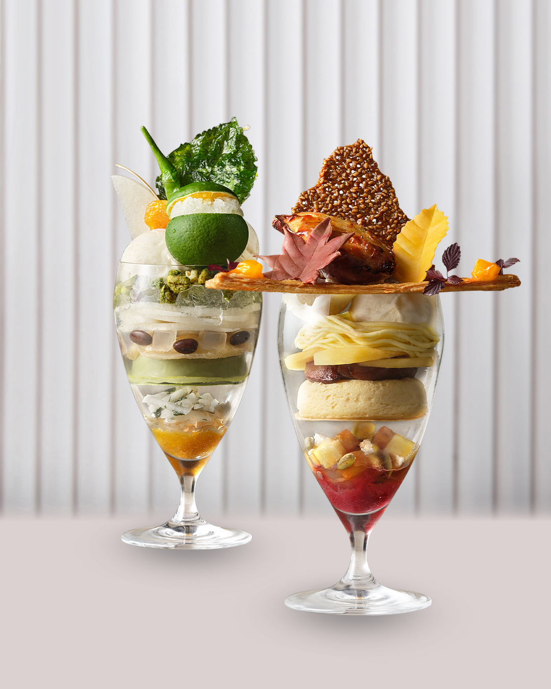 한국의 음식으로 만든 ‘젤라또 파르페 페어’(좌), 가을의 정서를 담은 ‘젤라또 파르페 스위트 포테이토’(우)
