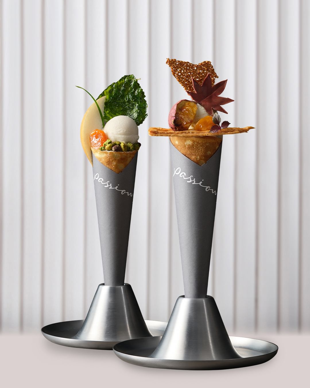 상큼한 배 소르베가 들어 있는 ‘젤라또 크레페 페어’(좌), 고구마의 깊은 맛, ‘젤라또 크레페 스위트 포테이토’(우)