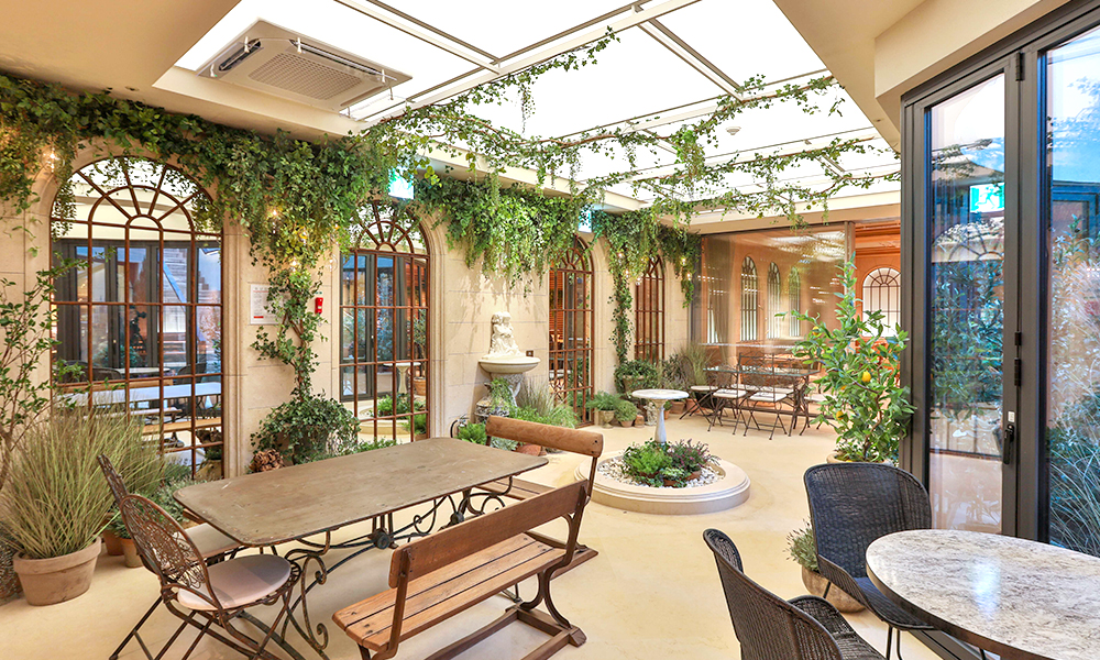 한편, 지하 1층에 위치한 테라스는 세련미와 클래식함을 갖춰 아늑한 분위기를 자랑하는 정원 공간이에요. 1층에서 구매한 빵을 이곳에서 먹을 수도 있고, ‘여기가 한국이 맞아?’라는 생각이 들 정도로, 이국적인 분위기를 자랑하는 패션5의 시그니처 공간이랍니다.