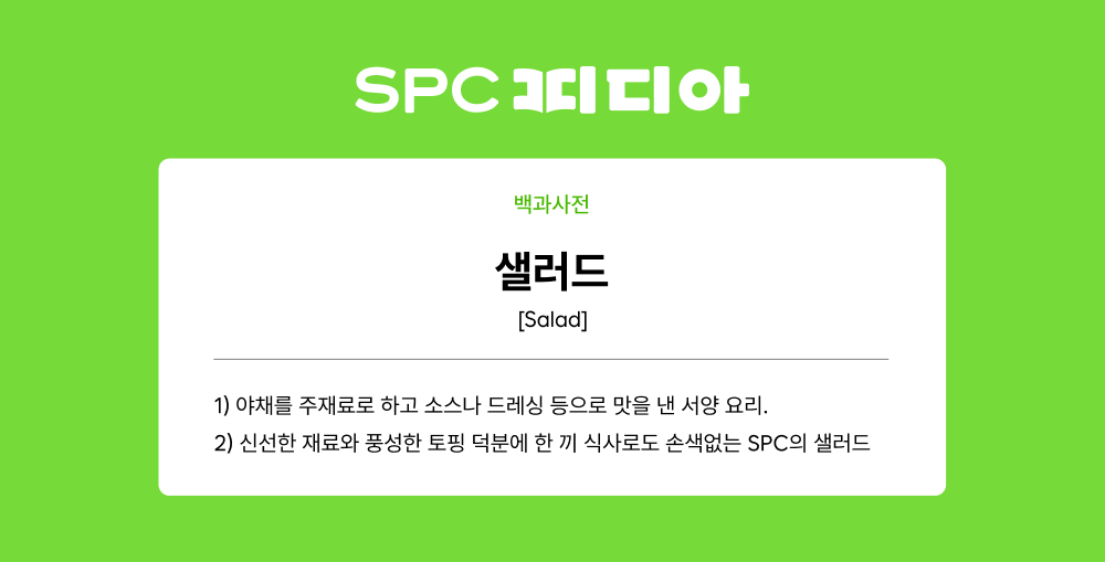 이번 SPC피디아에서는 SPC그룹이 선보이는 다채로운 샐러드를 통해, 오늘의 ‘맛있는 지식’을 알려드립니다. 지금부터 함께 살펴볼까요?👀