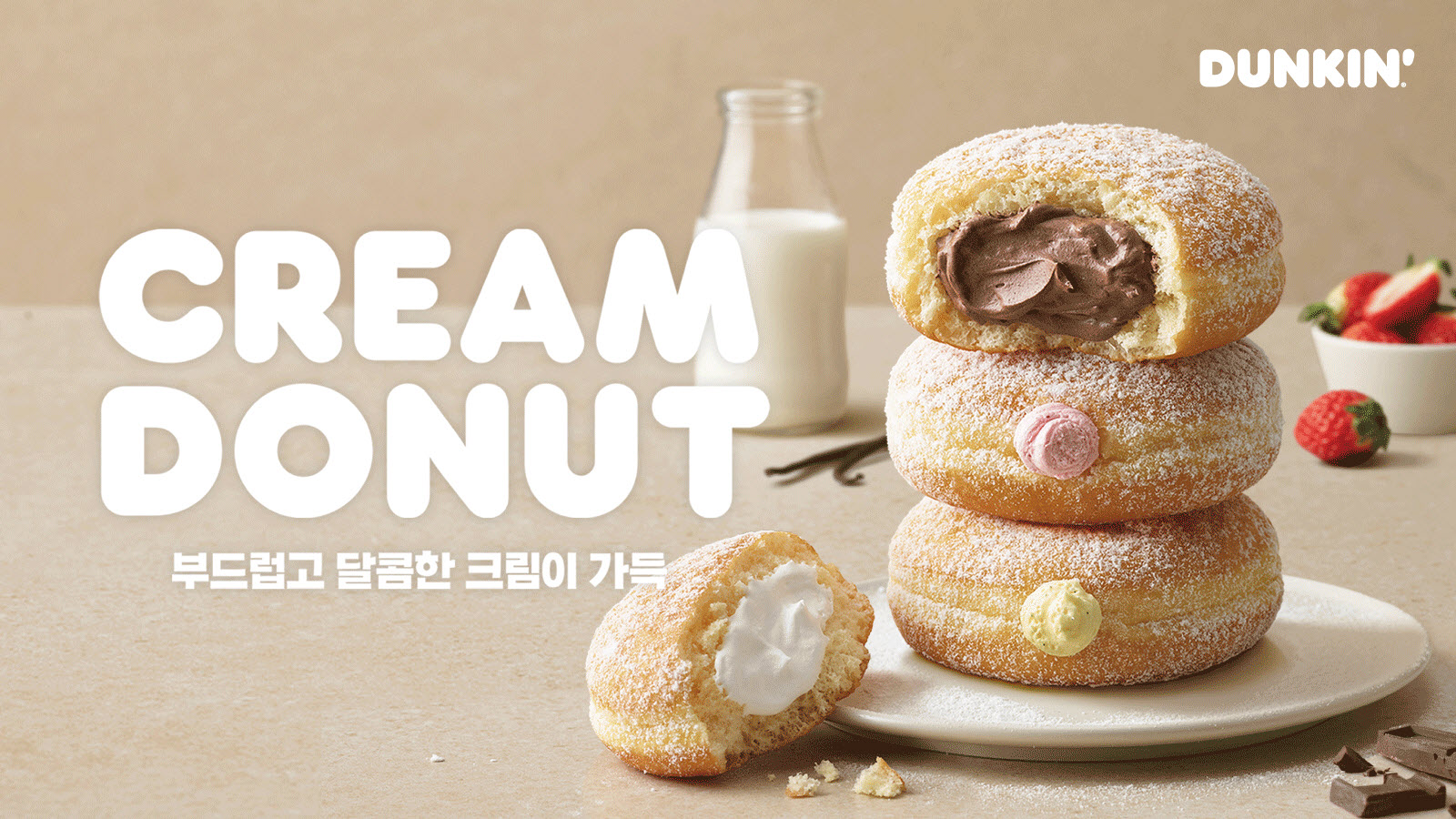 ‘초코 우유 크림도넛’은 던킨만의 노하우로 만든 촉촉하고 폭신한 도넛 속에 부드러운 초코 우유 크림을 가득 채운 제품이다. 여기에 크림 모양의 초코 사인판을 올려 귀여운 비주얼까지 더했다. 한입 베어 물면 달콤한 초코와 부드러운 우유가 조화롭게 어우러지며 깊은 풍미를 느낄 수 있다.