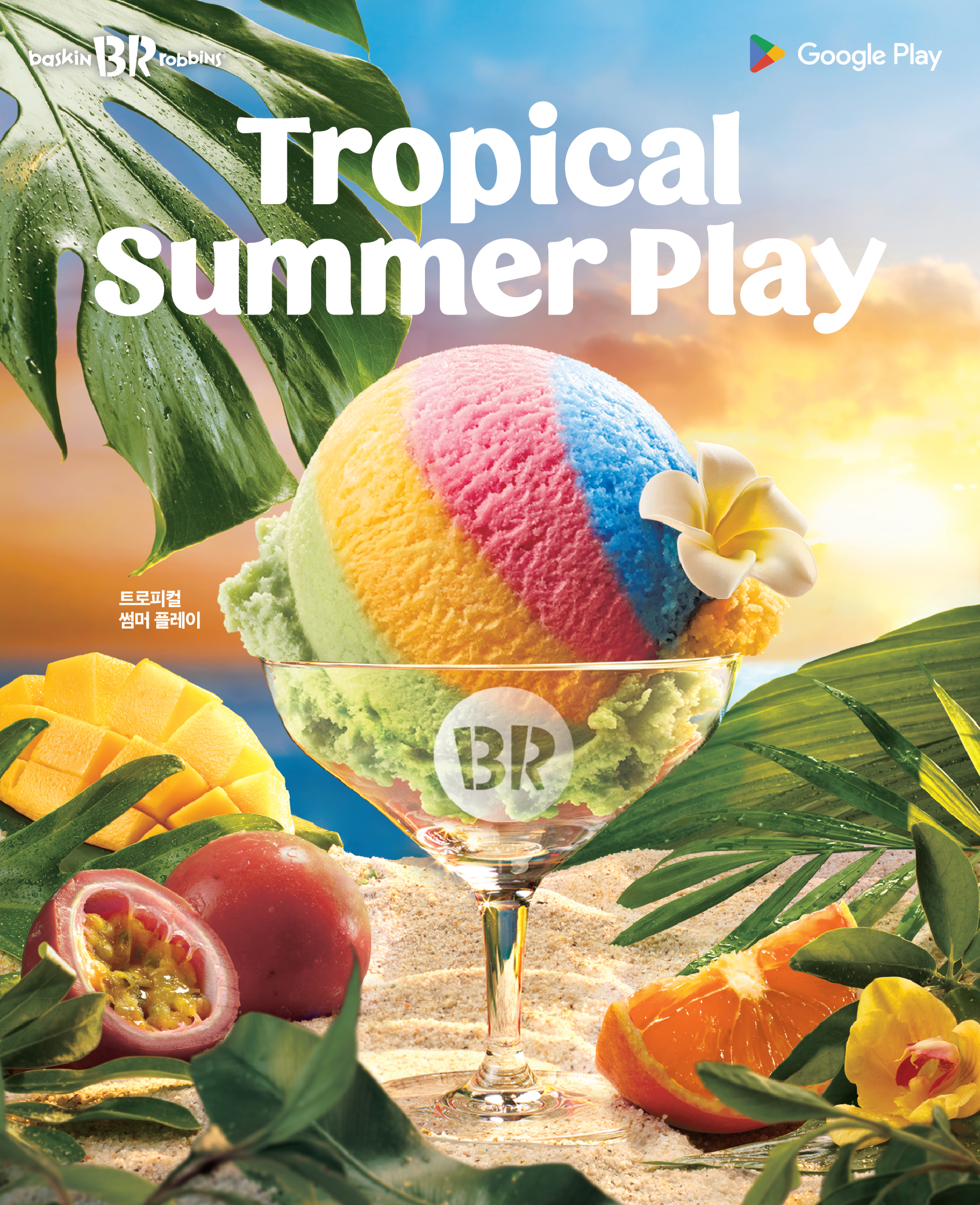 ‘트로피컬 썸머 플레이’는 가벼우면서도 청량감이 가득한 여름 대표 과일을 활용한 플레이버 조합이 특징이다. 빨강, 노랑, 초록, 파랑의 구글플레이 로고의 색을 각각 망고, 오렌지, 사과, 패션 후르츠 등 4가지 샤베트와 소르베의 조합으로 형상화해 시각적인 즐거움도 더했다. 구글플레이와의 이색적인 프로모션으로 탄생한 ‘트로피컬 썸머 플레이’는 여름 시즌 한정 운영될 예정이다.
