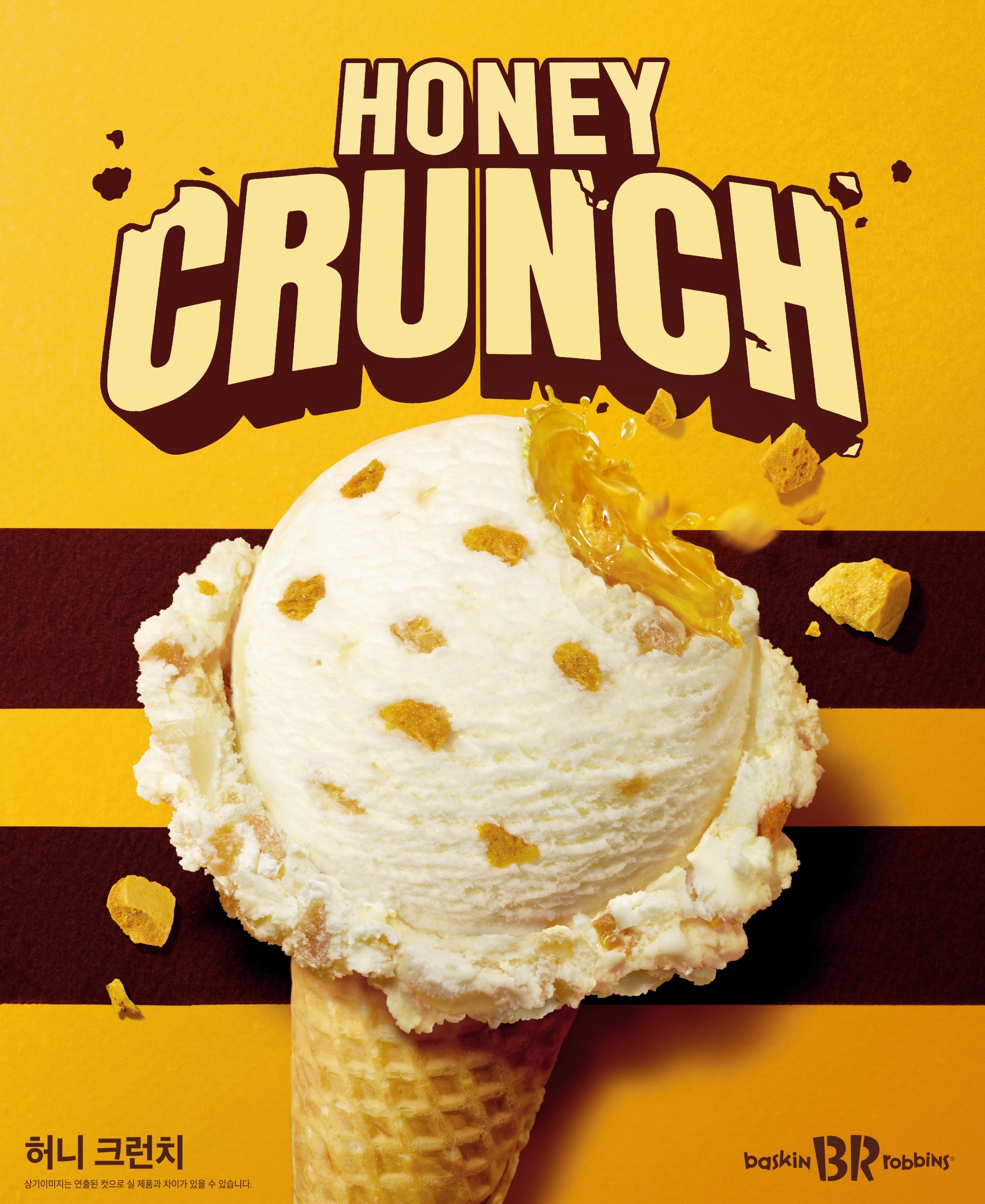 ‘허니 크런치’는 바닐라 향 아이스크림 베이스에 캐러멜라이징된 설탕을 일컫는 번트 슈가 향과 바삭한 허니 크런치를 조합해 꿀의 진한 달콤함과 바삭한 식감을 동시에 느낄 수 있다.