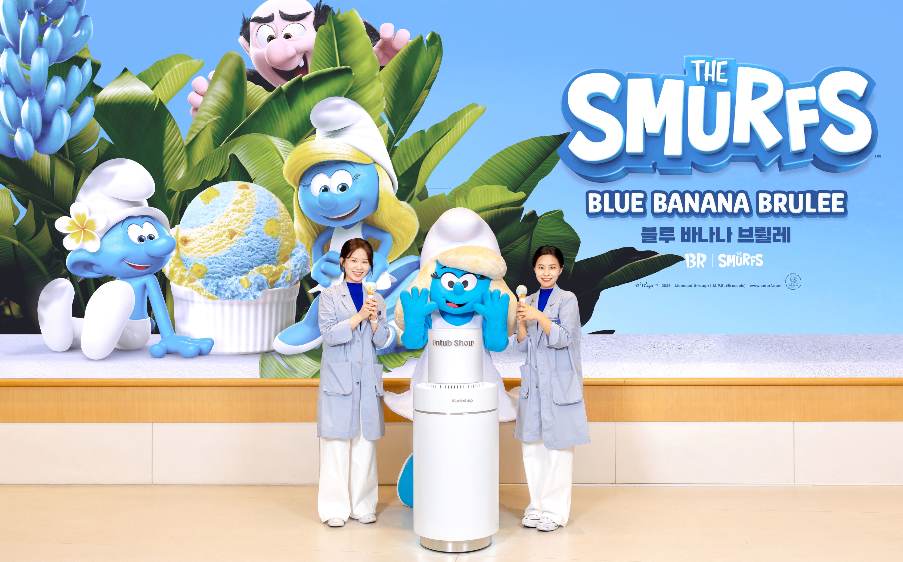 이번 언텁쇼(Untub Show, 신제품 아이스크림 ‘텁’ 최초 개봉 행사)는 ‘스머프 빌리지(Smurfs’ Village)’를 테마로, 실험과 창조의 공간 ‘워크샵 by 배스킨라빈스(이하 워크샵)’에서 25일 진행됐다. 현장에서는 8월 6일 개봉을 앞둔 영화 ‘스머프(The Smurfs Movie)’의 티저 영상이 상영됐다.
