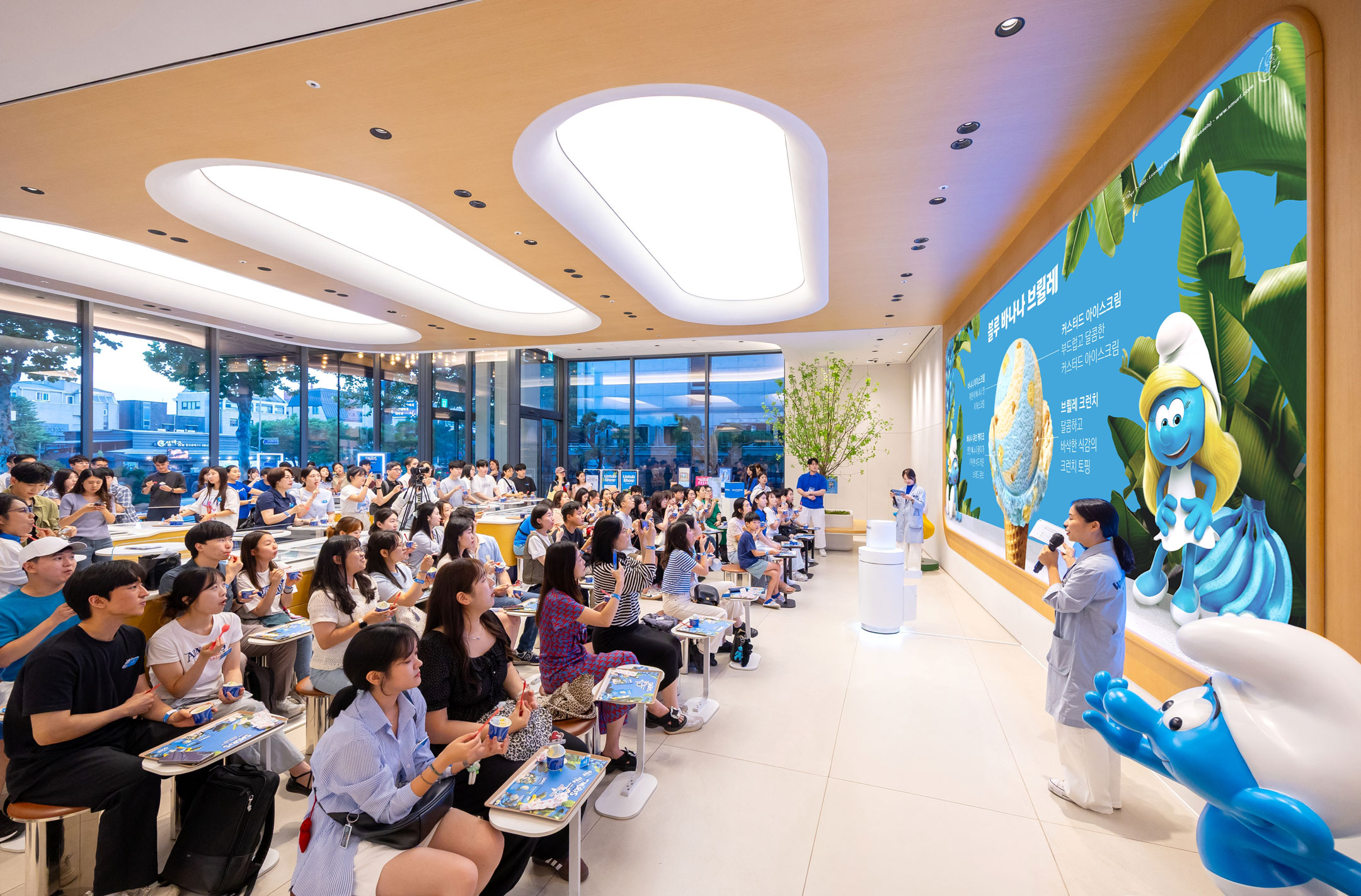 배스킨라빈스 관계자는 “스머프 세계관을 현실로 구현한 ‘스머프 빌리지’를 테마로 고객들에게 색다른 경험을 제공했다. 8월 이달의 맛 ‘블루 바나나 브륄레’를 비롯한 신제품에 많은 관심 부탁드린다”라고 말했다.