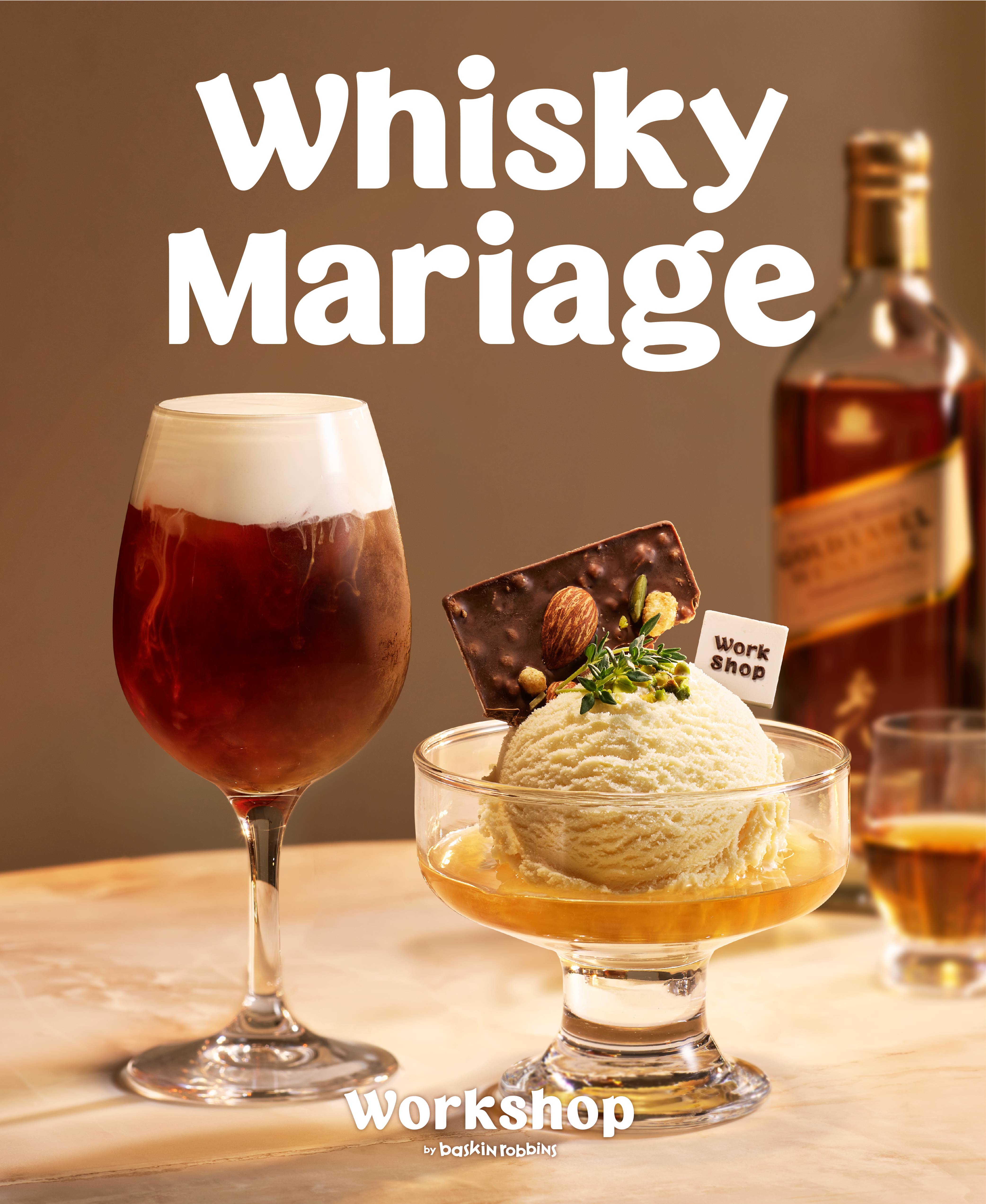 배스킨라빈스는 젊은 소비자 사이에서 인기를 끄는 하이볼 위스키와 더불어 아이스크림이 안주나 마무리 디저트로 주목받는 트렌드를 반영해 색다른 마리아주(marriage, 페어링 메뉴)를 기획했다. 워크샵에서 처음으로 선보이는 ‘위스키 마리아주’ 라인업은 배스킨라빈스 아이스크림과 커피에 조니워커 위스키를 더해 각각의 풍미를 살린 최고의 디저트 조합으로 소비자들에게 새로운 맛의 경험을 제공한다.