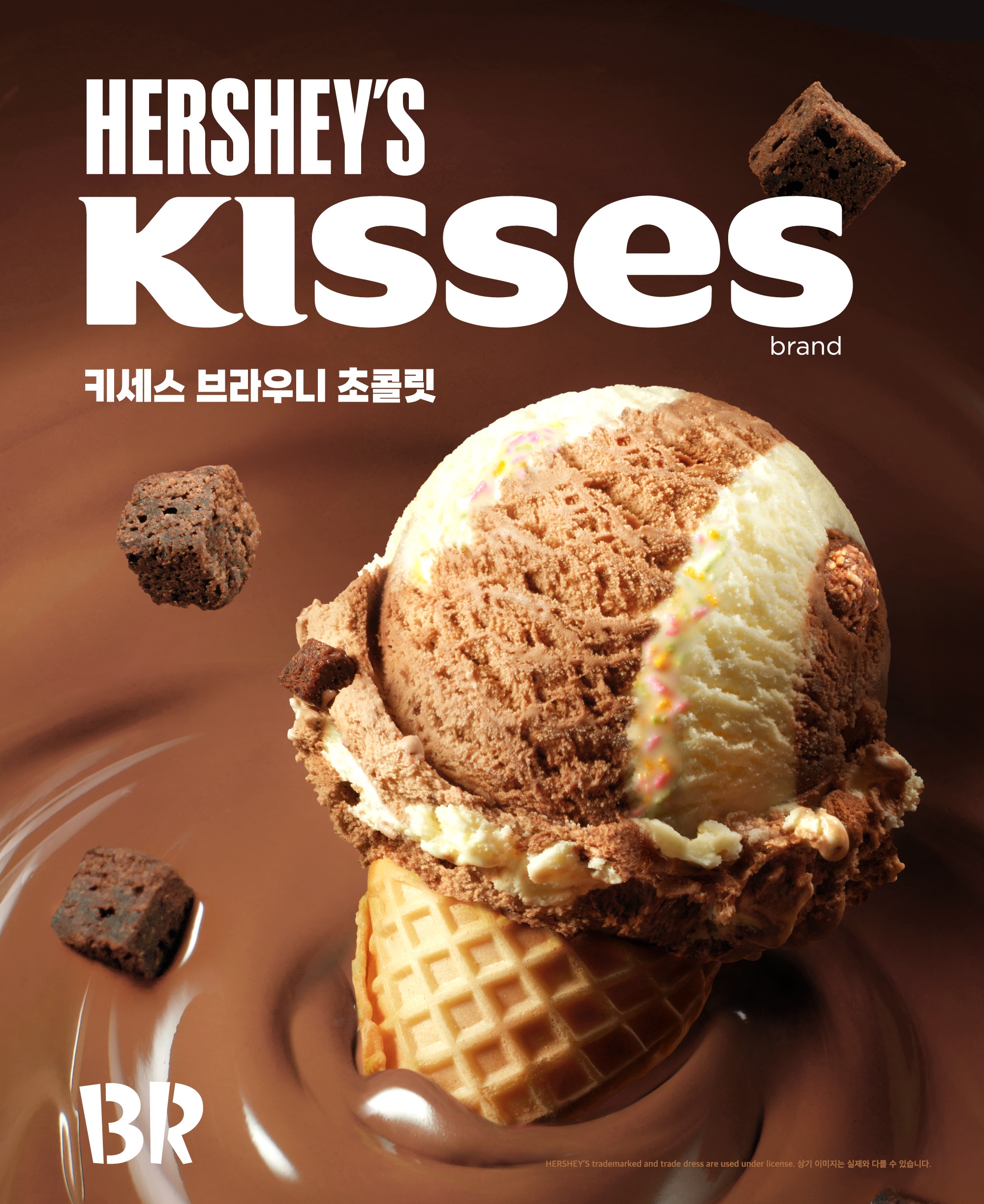 신제품은 키세스 초콜릿 아이스크림과 밀크 크림 아이스크림을 베이스로 스프링클이 뿌려진 크런치 볼과 화이트 리본, 그리고 브라우니 피스를 더해 부드러운 달콤함과 다양한 식감을 완성했다.
