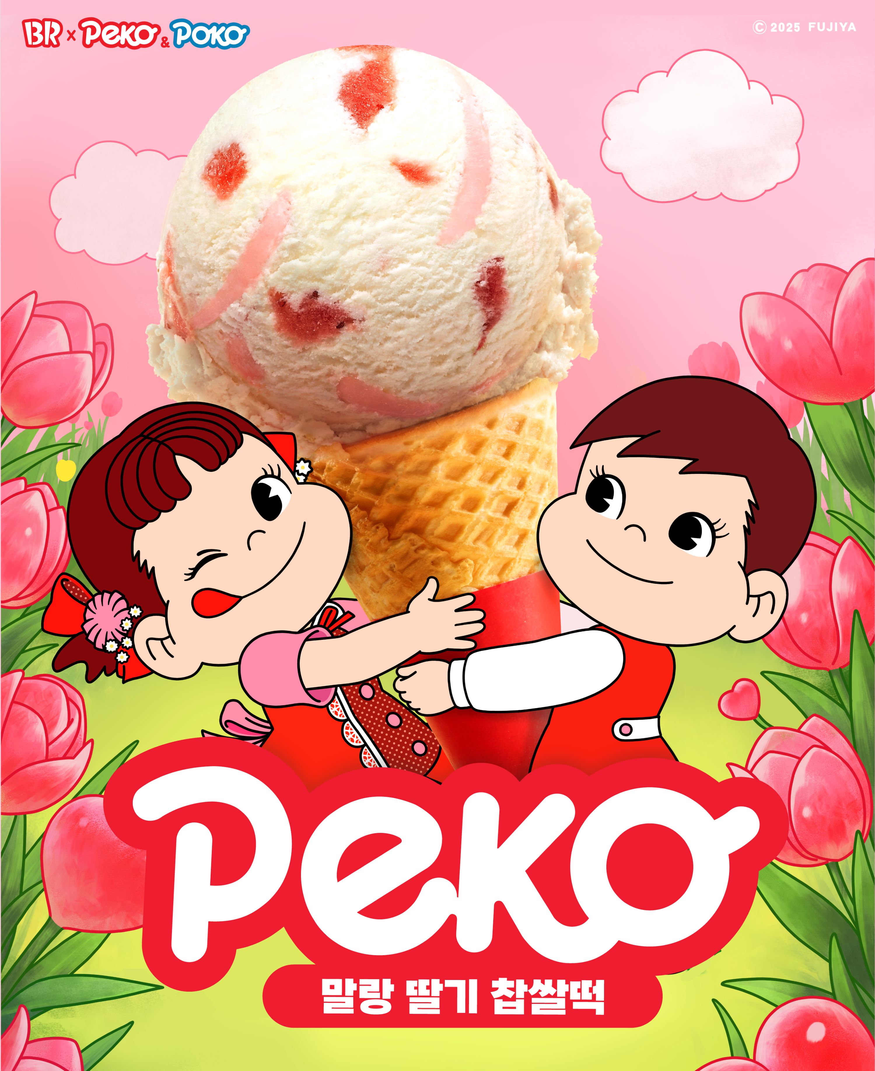 3월 이달의 맛 ‘말랑 딸기 찹쌀떡’은 딸기의 상큼함과 찹쌀떡의 말랑 쫄깃함이 어우러지는 플레이버로, 과일과 찹쌀떡을 함께 즐기는 디저트 트렌드를 아이스크림으로 재해석했다. 이번 제품은 일본 제과업체 후지야의 연유캔디 브랜드 ‘밀키(Milky)’와 협업했으며, 대표 캐릭터 ‘페코(Peko)’ 이미지를 활용해 화이트데이 시즌 분위기를 연출했다.