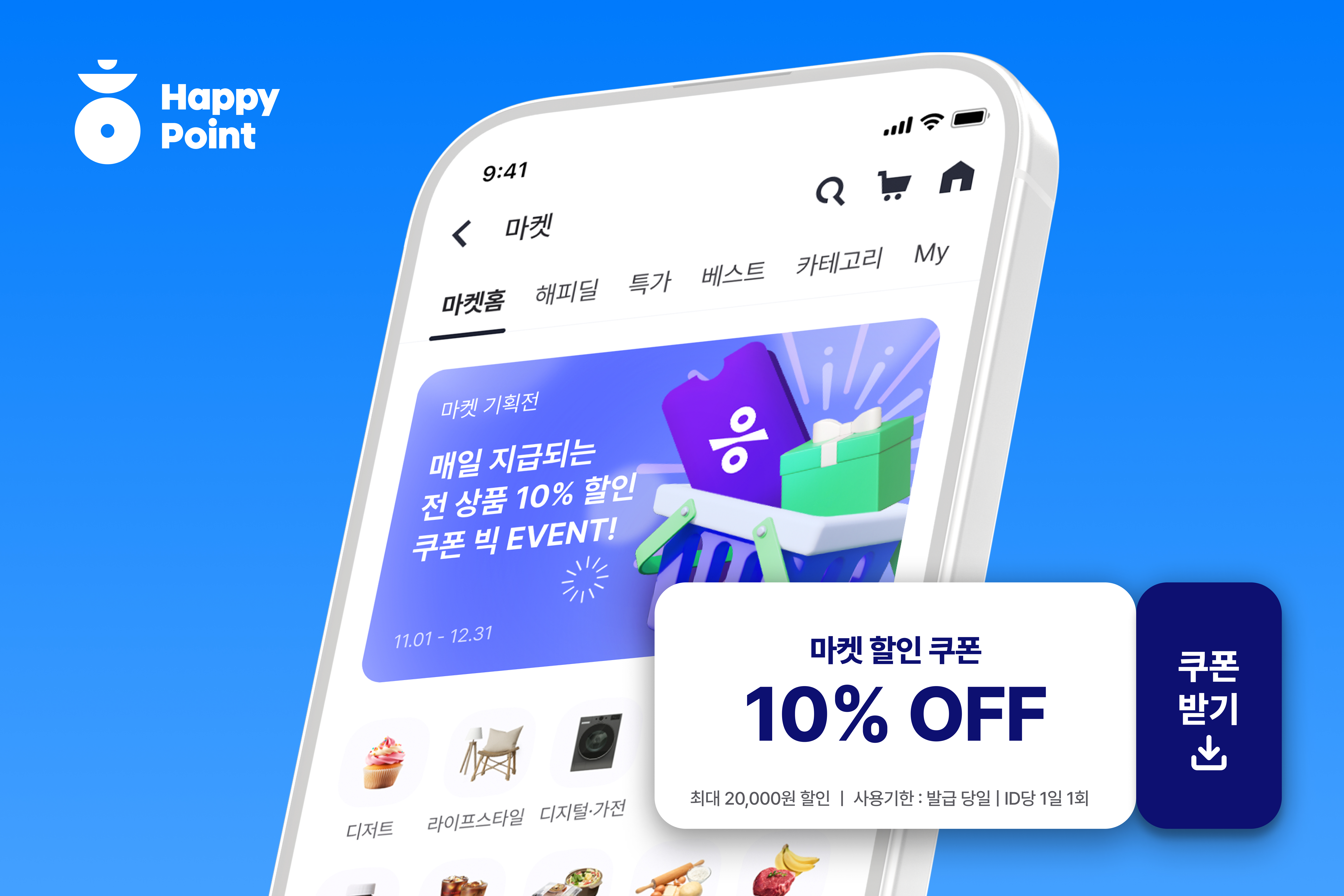 – 해피포인트 앱 내 ‘해피마켓’ 쿠폰 서비스 도입 기념 10% 할인 쿠폰 연말까지 제공