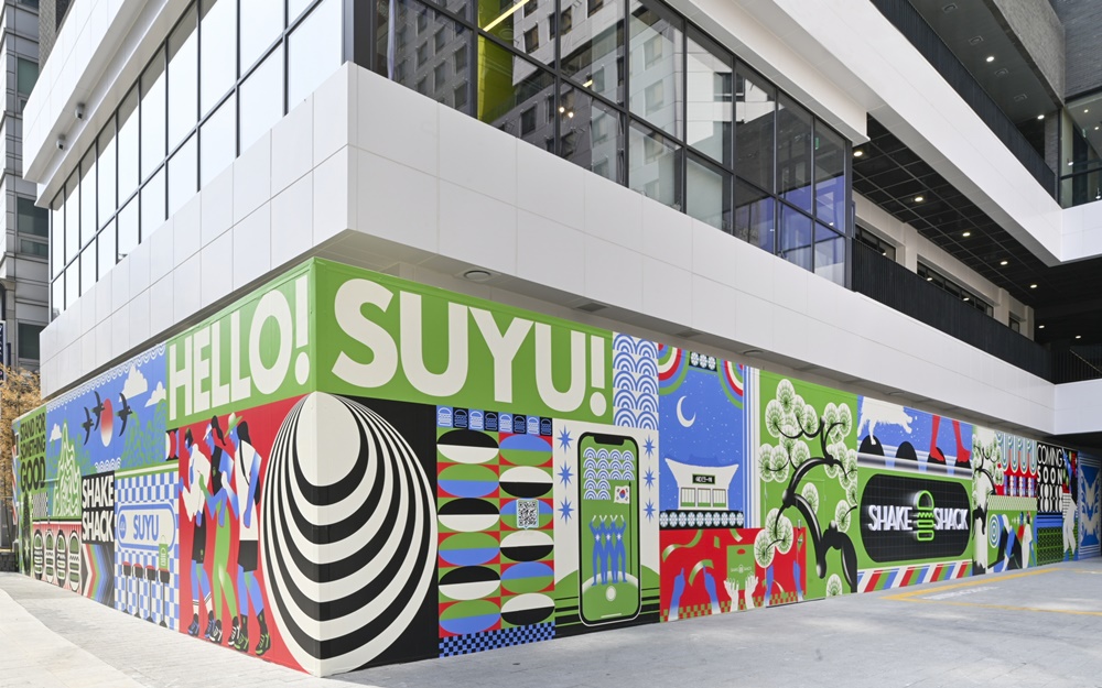 쉐이크쉑은 오는 5월 오픈에 앞서 국내와 해외에서 기하학적 패턴을 활용한 작품으로 인지도를 쌓고 있는 일러스트레이터 ‘권도희’와 협업하여 호딩 아트(Hoarding Art, 공사장 주위의 임시 가림막에 그리는 작품)를 선보인다. 강북구를 상징하는 북한산과 우이천, 화계사 등 지역의 다양한 정취를 담아 ‘에피소드 수유’라는 주제로 아트워크를 완성했다.