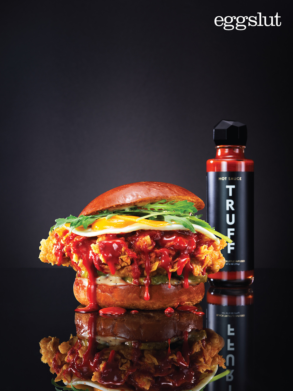에그슬럿은 블랙 트러플(송로버섯)으로 만든 트러프의 대표 제품인 ‘트러프 핫소스’를 활용해 ‘트러프® 치킨버거’ 를 선보인다. ‘트러프® 치킨버거 (12,300원)’는 에그슬럿의 동물복지달걀에 진한 풍미를 자랑하는 블랙 트러플(black truffle, 송로버섯)과 칠리 페퍼로 만든 트러프 핫소스에 바삭한 프라이드 치킨의 조화가 어우러진 것이 특징이다.