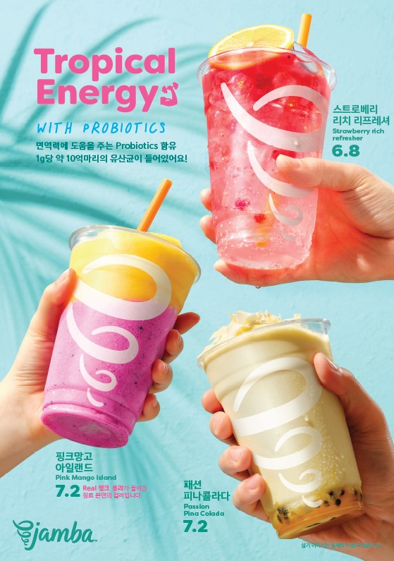 SPC가 운영하는 건강한 라이프스타일 브랜드 잠바주스가 열대과일을 활용한 시즌 음료 4종을 출시했다고 25일 밝혔다. 이번 신제품은‘트로피칼 에너지’를 콘셉트로 핑크용과, 코코넛, 리치, 패션푸르트, 망고 등 열대과일을 주원료로 활용했다.
