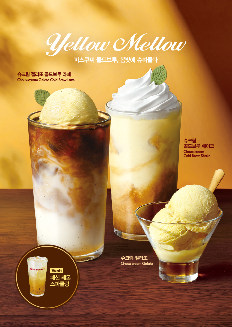 파스쿠찌는 △바닐라빈과 부드러운 우유가 어우러져 매력적인 ‘슈크림 젤라또’, △부드럽고 달콤한 바닐라빈 콜드브루 라떼에 달콤한 슈크림 젤라또가 플로팅 된 ‘슈크림 젤라또 콜드브루 라떼’, △콜드브루에 젤라또로 만든 슈크림 쉐이크가 어우러져 밸런스가 조화로운 커피 그라니따 ‘슈크림 콜드브루 쉐이크’를 선보였다. 봄빛을 연상케하는 화사한 노란 색감과 음료 위에 얹어진 꽃잎 초코픽은 봄의 싱그러운 분위기를 한층 더했다.