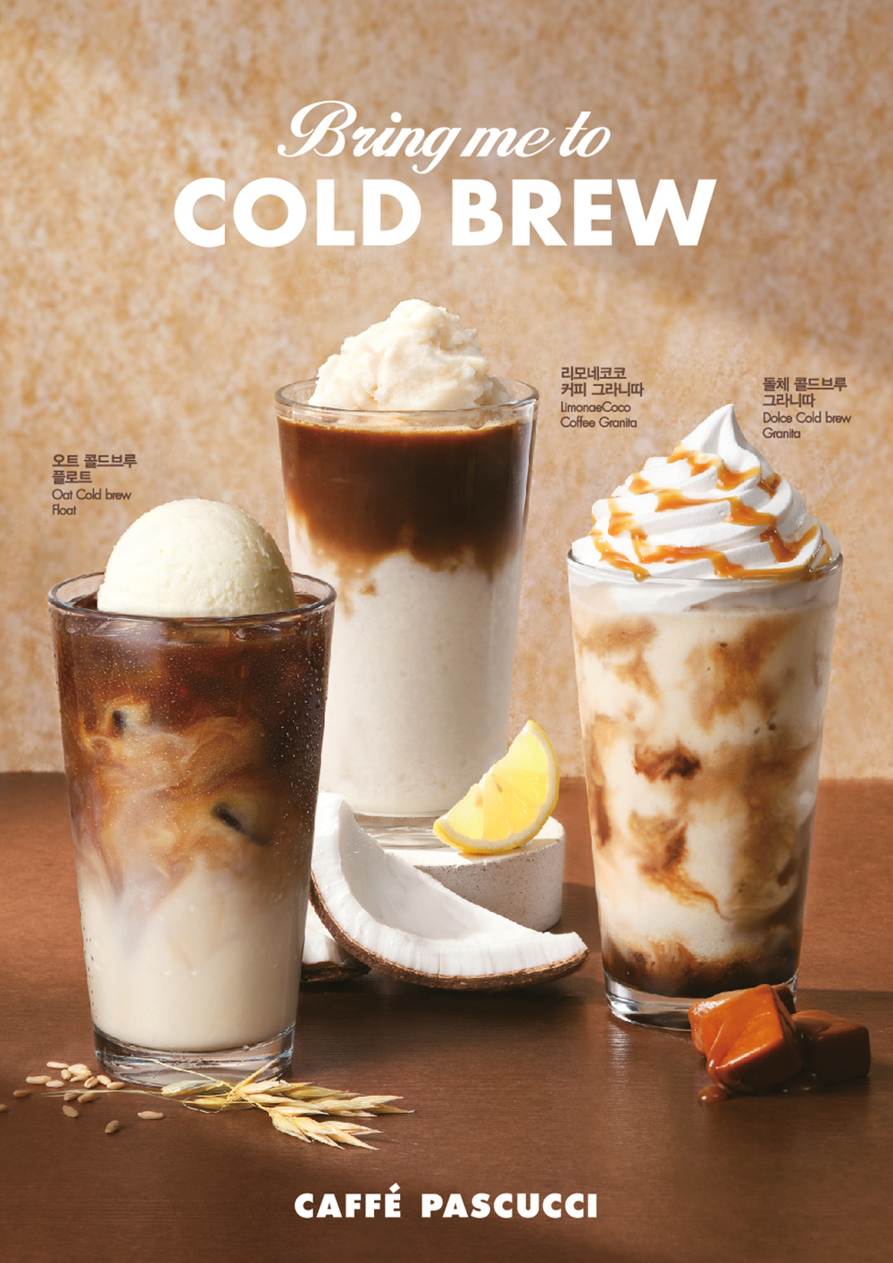 신제품은 △고소한 식물성 오트 음료와 콜드브루 커피에 티라미수 젤라또를 더해 시원하게 즐길 수 있는 ‘오트 콜드브루 플로트(R6,500원)’ △상큼한 코코넛 레몬베이스 그라니따에 콜드브루 샷을 넣어 조화로운 맛을 완성한 ‘리모네코코 커피 그라니따(R6,800원)’ △쫀득한 솔티 카라멜 젤라또에 콜드브루 커피와 휘핑크림이 어우러져 달콤하고 부드러운 ‘돌체 콜드브루 그라니따(R6,800원)’ 등 3종이다.