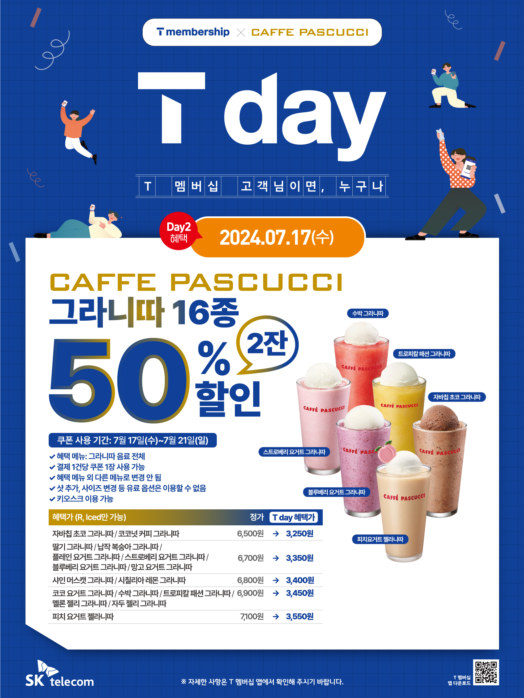 파스쿠찌 관계자는 “부쩍 무더워진 날씨에 고객들이 파스쿠찌의 시원한 그라니따를 합리적인 가격에 즐길 수 있도록 7월 ‘T day’ 프로모션을 준비했다”라며 “파스쿠찌와 SKT가 준비한 혜택을 즐기며 올여름 시원하게 보내시길 바란다”라고 전했다.