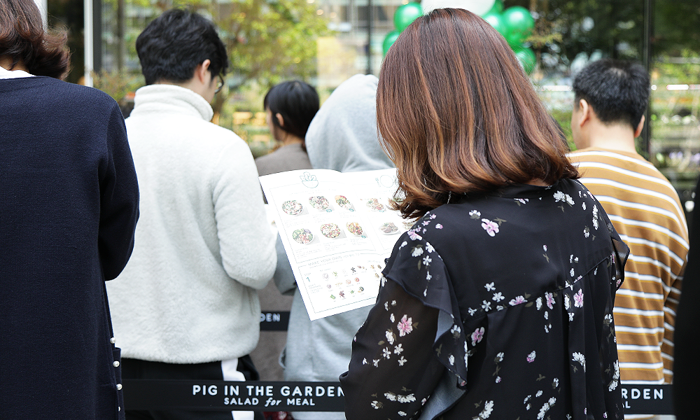 피그인더가든에서는 주문과 동시에 만들어지는 ‘볼샐러드(Bowl Salad)’, 드레싱과 토핑부터 30여 가지의 채소까지 취향에 맞게 선택해 주문할 수 있는 ‘나만의 샐러드(Make Your Own)’, 그릴 메뉴와 스쿱 샐러드를 골라 구성하는 ‘플레이트(Plate)’ 등의 대표 메뉴와 더불어 제철 원료를 활용한 다양한 신규 메뉴가 함께 소개됩니다.