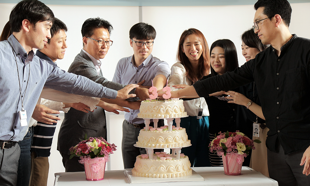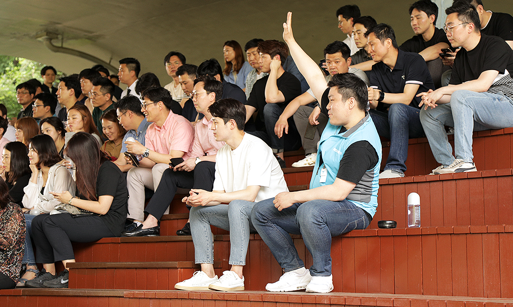 푸르른 녹음이 가득한 양재천 야외공연장으로 직원들이 하나, 둘 모여들자, 회사에 대해 알아보는 깜짝 퀴즈와 회사의 연혁을 돌아보는 시간과 함께 창립기념식이 시작되었습니다. 이어 신규 입사자들이 소개되고, 간단한 인사말과 함께 앞으로의 각오를 다진 비알코리아의 새로운 멤버들은 열렬한 박수로 환영받았습니다.