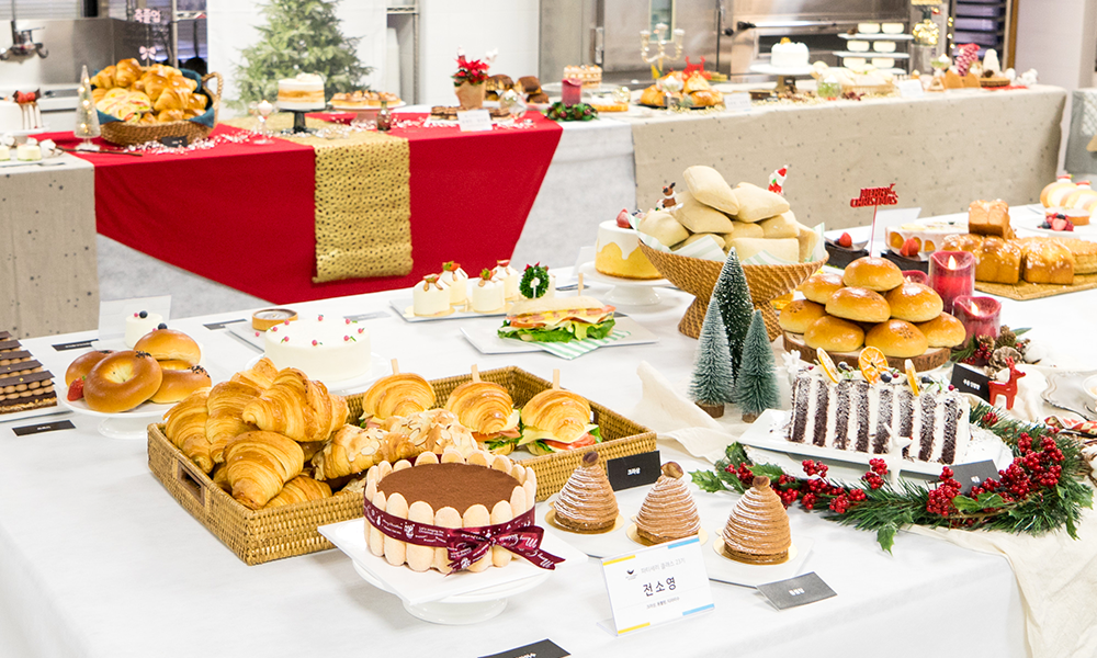 지난 12월 14일 SPC 컬리너리 아카데미 신대방 교육장에서 파티세리 23기, 24기와 프랑스 정통빵 8기, INBP 제빵 6기의 4개월간의 대장정이 마무리되는 수료식이 진행됐습니다. 이 날은 특별히 수료식에 앞서 오픈하우스가 같이 진행됐는데요. 오픈하우스를 통해 컬리너리 아카데미에 관심 있는 사람들에게 수강생들의 작품을 선보이는 시간을 가졌습니다. 지금 바로 시중에 판매돼도 전혀 손색이 없을 만큼 완성도가 높은 모습을 볼 수 있었습니다. 특히 전시 장소마다 시식코너가 준비돼있어 다양한 종류의 졸업 작품을 맛볼 수도 있었습니다. 각 클래스별로 어떤 빵을 선보였는지 그 현장을 소개합니다.