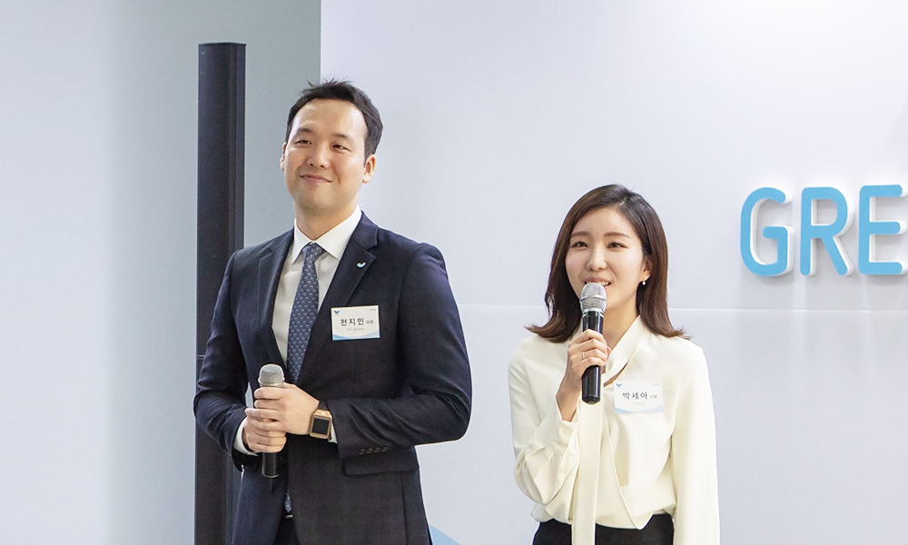 아울러 각 계열사를 대표하는 임직원들과 ‘청년문화실천단’은 새로운 걸음을 위한 비전을 공유하고 노력을 다짐하는 시간도 가졌습니다. 행사를 끝으로 임직원 간 새해 인사와 덕담을 나누는 다과회가 진행됐는데요. 직급을 초월하여 스탠딩 형식으로 이루어졌습니다. 또 허영인 회장과 임직원이 함께 축하떡을 커팅하는 기념행사를 진행했습니다.