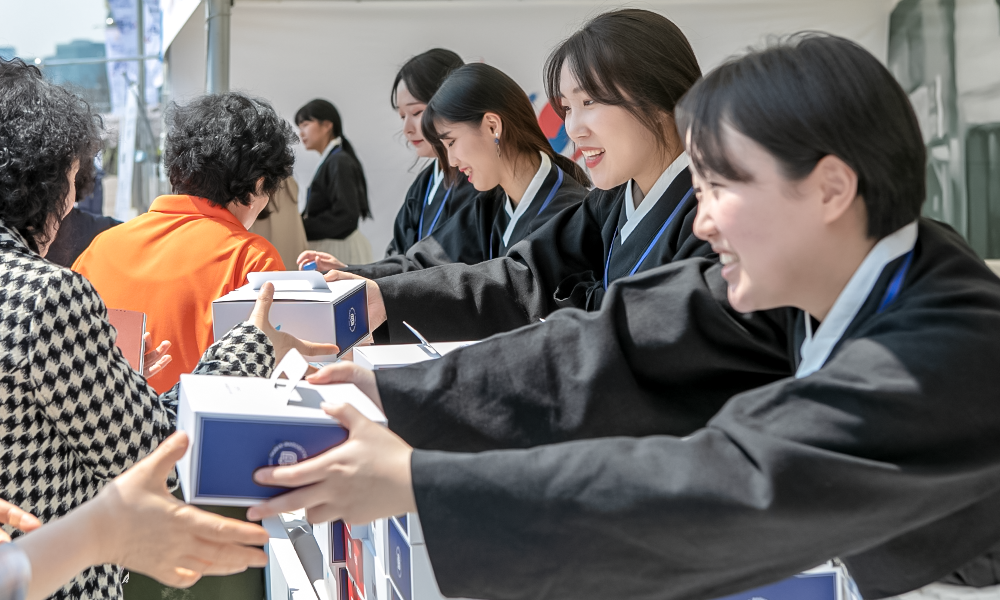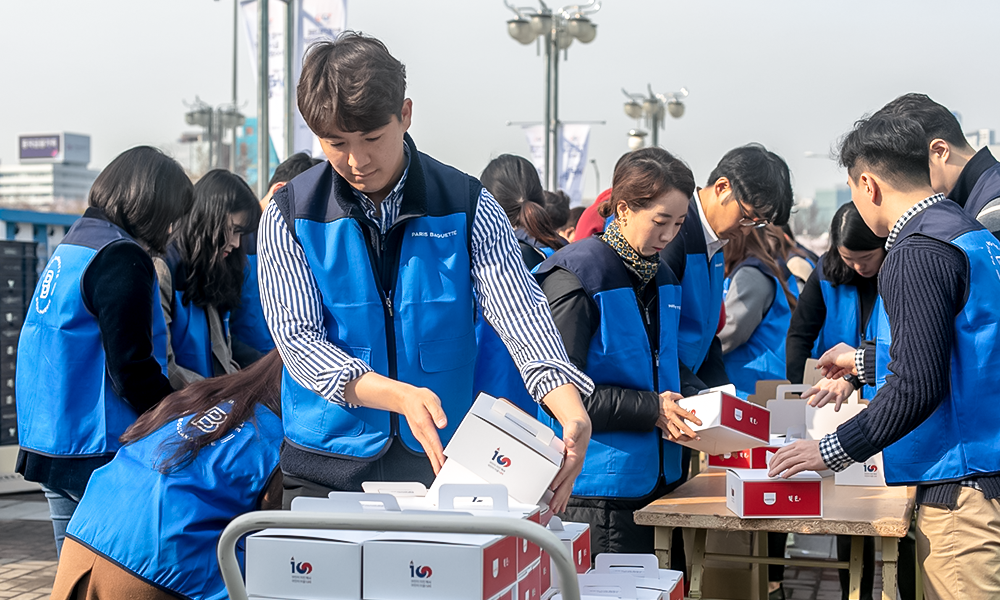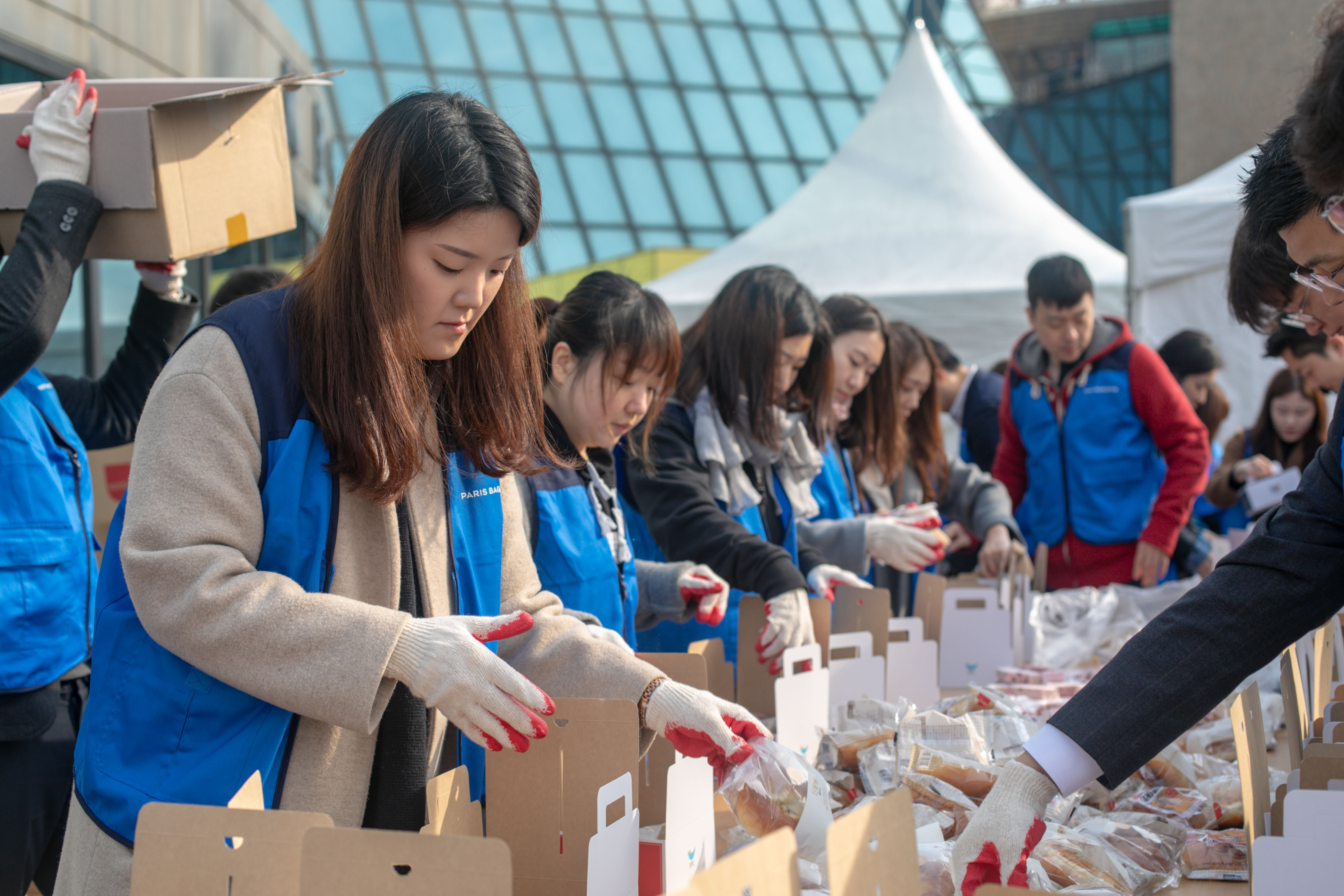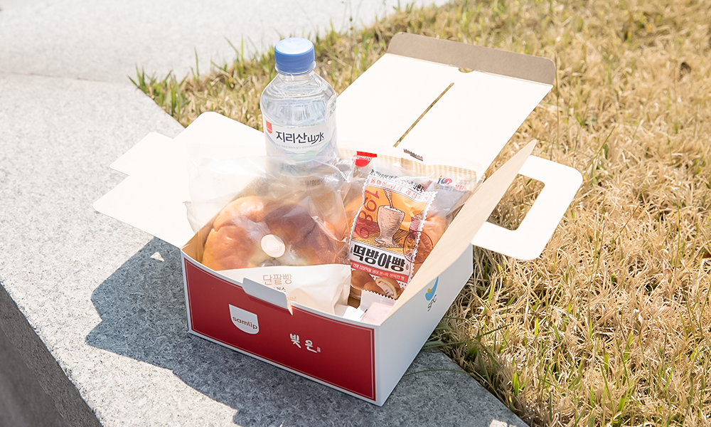 아침 일찍부터 SPC그룹 임직원들은 ‘리멤버 411(Remember 4.11)’ 캠페인을 준비하기 위해 분주히 움직였습니다. 여의도 KBS홀 앞 광장에서 진행된 이번 행사는 ㈜파리크라상과 ㈜SPC삼립의 인기 제품을 기프트 박스에 담아 증정했습니다. 파리바게뜨 단팥빵 플러스와 SPC삼립의 떡방아빵과 지리산수, 빚은의 미홍찰떡 등 모두가 즐겨 먹는 제품으로 구성되었는데요. 이날 오전 10시부터 저녁 8시까지 매 ‘11분’마다 부스 방문객에게 기프트 박스를 증정했습니다. 오후 2시 11분부터는 ‘국민의 빵’ 시식 행사도 함께 진행되어 방문객들은 파리바게뜨의 쫄깃한 곡물 호떡, 쫄깃한 찰떡 맘모스, SPC삼립의 꿀떡꿀떡 등을 맛볼 수 있었습니다.