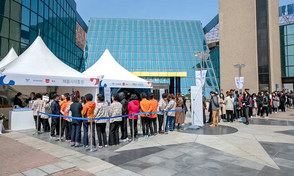 이날 기프트 박스와 시식 행사를 위해 100미터에 가까운 대기줄이 이어졌습니다. 기프트 박스를 수령한 방문객의 얼굴에는 밝은 미소가 번졌는데요. 이번 행사 준비에 참가한 파리크라상 직원들은 “많은 분들께서 부스를 찾아주시고 SPC그룹 제품을 많이 좋아해주셔서 더 보람을 느낀다”며 “동료들과 역사적으로 중요한 날을 뜻깊게 보낼 수 있어 더욱 좋았다”라고 소감을 밝혔습니다.