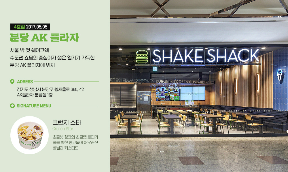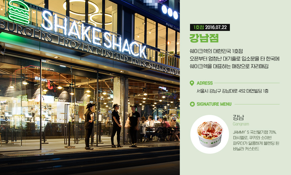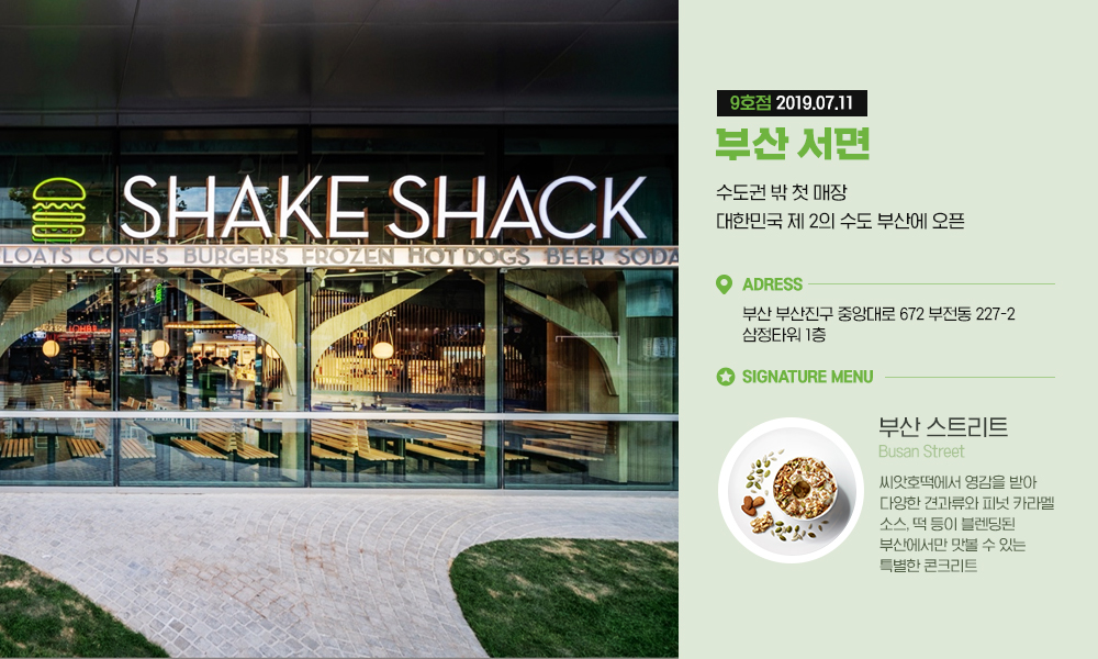 지난 2016년 강남역에 국내 첫선을 보인 쉐이크쉑 버거는 고객들에게 뜨거운 호응을 끌어내며 국내 진출 4년 만에 10개 매장을 오픈하는 등 많은 사랑을 받고 있는데요. 이제는 서울뿐만 아니라 인천, 분당, 부산에서까지 쉐이크쉑 버거를 맛볼 수 있는 공간이 더욱 많아지고 있습니다.