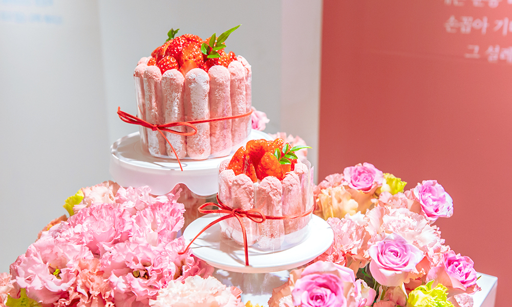 파리바게뜨 시그니처 케이크는 프랑스 귀부인 모자를 뜻하는 샤를로뜨(Charlotte)를 본떠 상큼한 딸기 콤포트(Compote, 과일을 설탕에 졸인 것)와 레제르 크림(생크림+커스터드크림), 딸기 무스를 조합한 ‘스트로베리 샤를로뜨’, 딸기 콤포트와 레제르 크림, 피스타치오 무스, 화이트 초콜릿 크런치를 첨가한 ‘화이트 로얄 밀크’, 카라멜소스와 크런치볼, 마스카포네 치즈크림을 더한 ‘솔티드 카라멜’로 구성되었는데요. 각 테마에 맞춘 연출 덕분에 더욱 화려하고 풍성한 케이크의 모습을 만나 볼 수 있었습니다.