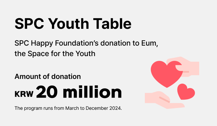 To this end, SPC and Eum, the Space for the Youth have launched a joint social contribution program dubbed “SPC Youth Table.” Under this program, SPC Happy Foundation donated KRW 20 million to Eum to help young Koreans who are experiencing financial distress, social isolation, and other problems. SPC Youth Table runs from March to December.