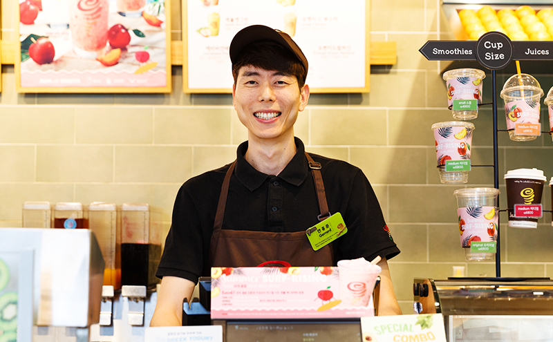 l 과일을 좋아하는 자신에게는 잠바주스가 최고의 직장이라고 말하는 안홍준 점장