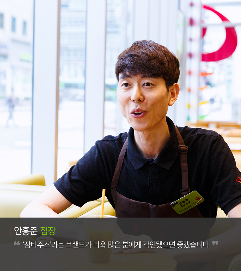l 과일을 좋아하는 자신에게는 잠바주스가 최고의 직장이라고 말하는 안홍준 점장