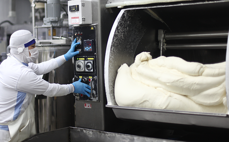 우선, 배합부터 살펴볼까요? 배합은 밀가루, 쌀 발효액, 천연효모, 설탕, 소금 등의 재료를 넣고 반죽하는 과정을 말합니다. 제작 공정 중 가장 중요한 과정이기도 한데요. 질거나 되지 않은 적절한 반죽의 질감이 맛을 좌우하기 때문입니다. 배합 시에는 물과 반죽의 온도를 일정 수준으로 유지해주는 것이 중요합니다.