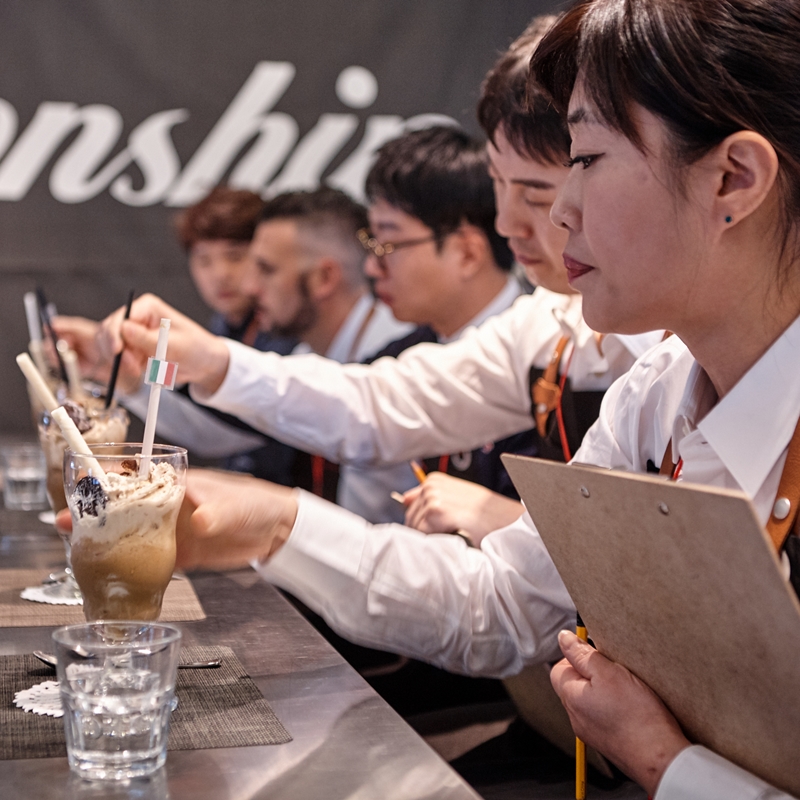 심사는 테크니컬 심사위원 2명과 센서리 심사위원 4명이 진행했습니다. 우리 회사 직원 가운데 KNBC(Korea National Barista Championship) 대회 선수 및 심사위원 경력자를 중심으로 구성되었습니다. 이날 결승전에는 이탈리아 파스쿠찌 소속의 파비오 안드리아니(Fabio Andreani)가 센서리 심사위원으로 참여하기도 했습니다.