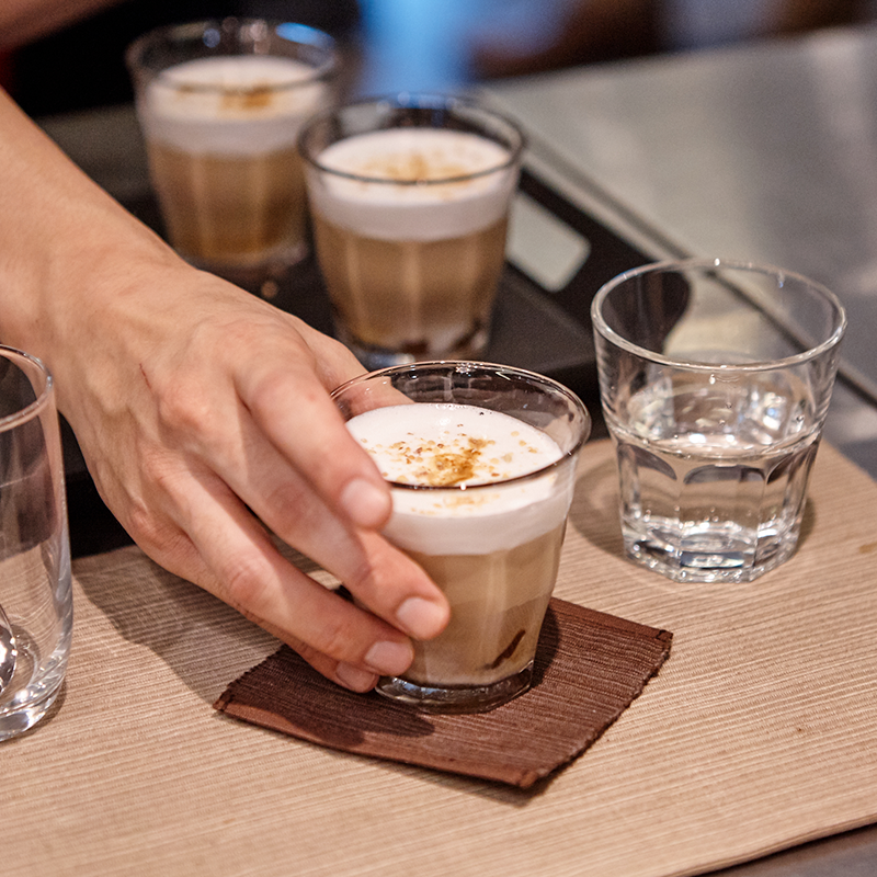 강서원 바리스타는 피넛버터와 카라멜 소스, 아몬드 시럽이 어우러진 에스프레소 마끼아또를 선보였습니다. 에스프레소의 쓴맛에 익숙하지 않은 고객을 위하여 고소한 맛을 부각시킨 커피입니다. 관능 포인트는 비스킷, 바닐라, 마들렌, 견과류의 고소함입니다.