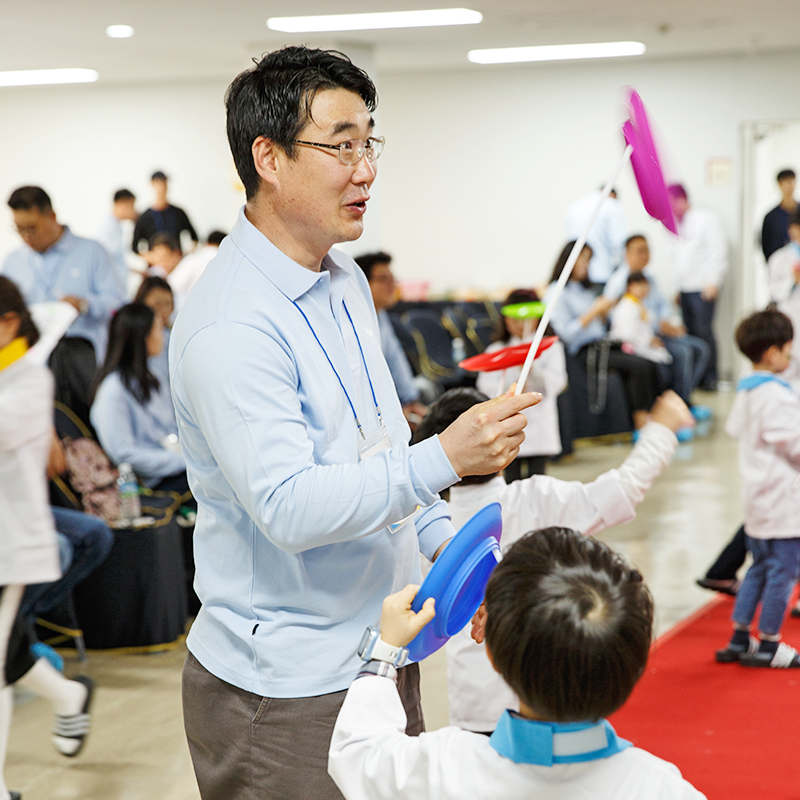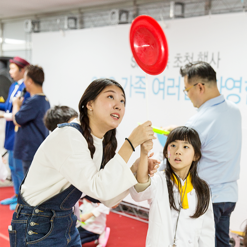 공장 견학을 마친 후 이어진 마지막 순서는 SPL 특설 무대에 마련된 레크리에이션 시간이었습니다. 접시 돌리기부터 주사위 던지기까지 다양한 레크리에이션 활동을 통해 온 가족이 웃음 넘치는 시간을 보냈고, 이를 끝으로 가족초청행사는 마무리 되었습니다.