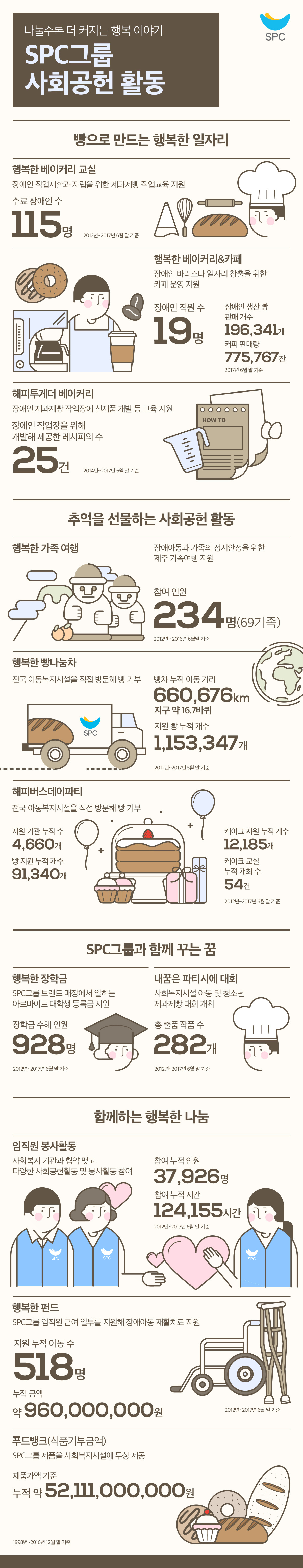 앞으로도 모두가 행복해지는 그날까지 SPC그룹이 앞장서도록 하겠습니다! 자세한 내용은 하단의 사회공헌 뉴스레터를 통해 확인하실 수 있습니다!