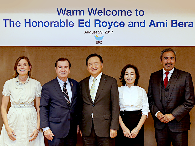 에드 로이스 위원장과 아미 베라 의원은 친한파 미 의원 모임인 ‘코리아 코커스(Korea Caucus)’의 공동의장으로 한-미 경제 협력 증진 차원에서 국내 대표 식품기업인 우리 회사를 방문했습니다. 의원들은 미국 파리바게뜨 진출 현황 및 투자 계획 등에 대한 설명을 듣고, 향후 우리 회사와 캘리포니아주의 협력 및 투자 확대 방안에 대해 논의했습니다.
