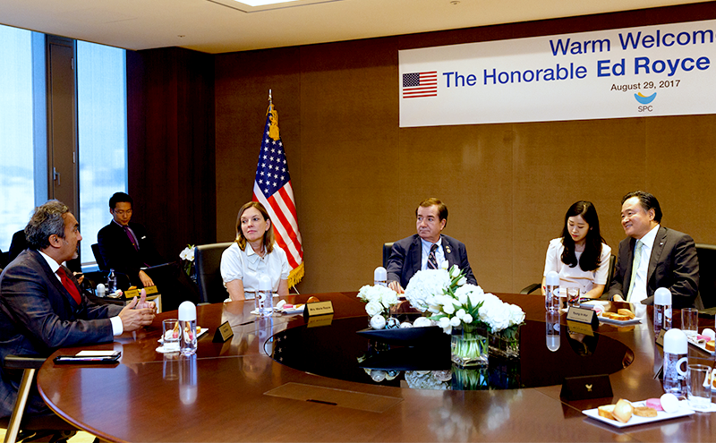 지난 8월 29일, ‘에드 로이스(공화ㆍ캘리포니아)’ 미국 하원 외교위원장, ‘아미 베라(민주ㆍ캘리포니아)’ 미 하원 의원이 우리 회사 본사를 방문해 환담을 가졌습니다.