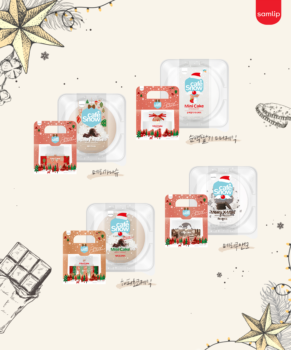 이번에 출시한 SPC삼립 크리스마스 에디션 미니케익은 초코커스타드가 들어가 진한 초코 케이크 위에 크리스마스 분위기의 데코를 더한 ‘메리가나슈’, ‘해피초코케익’, 쿠앤크 크림과 초콜릿 토핑을 얹은 ‘메리쿠앤크’, 새하얀 생크림 위에 생딸기를 얹은 ‘순백딸기 미니케익’으로 총 4종입니다. 크리스마스를 연상하게 하는 패키지 디자인을 적용했으며 간편하게 들고 갈 수 있는 트레이를 함께 제공합니다.