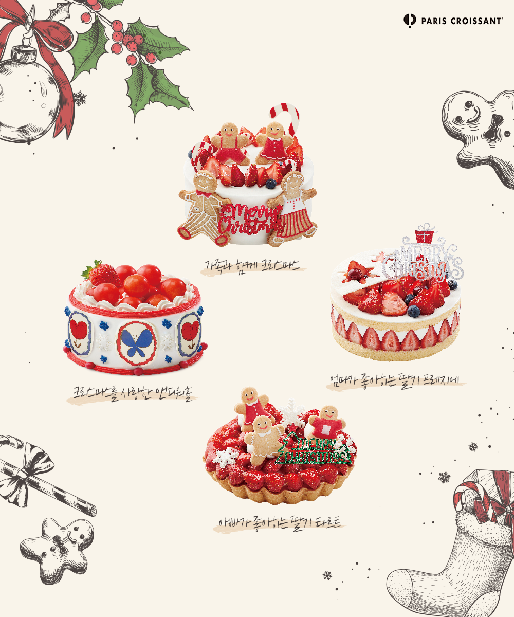 파리크라상은 그린 케익 디자인을 그대로 나타낸 홍차, 딸기 생크림 케익 ‘크리스마스를 사랑한 앤디워홀’, 딸기 생크림 케익에 온 가족을 함께 표현한 크리스마스 케익 ‘가족과 함께 크리스마스’, 크리스마스 선물을 표현한 딸기 프레지에 케익 ‘엄마가 좋아하는 딸기 프레지에’, 크리스마스에 가족과 함께 먹는 레어치즈를 듬뿍 넣은 딸기 타르트 ‘아빠가 좋아하는 딸기 타르트’ 등 총 31종을 출시했습니다. ‘크리스마스를 사랑한 앤디워홀’의 경우 100% 수작업을 통해 제작되기 때문에 사전 예약으로만 판매됩니다.