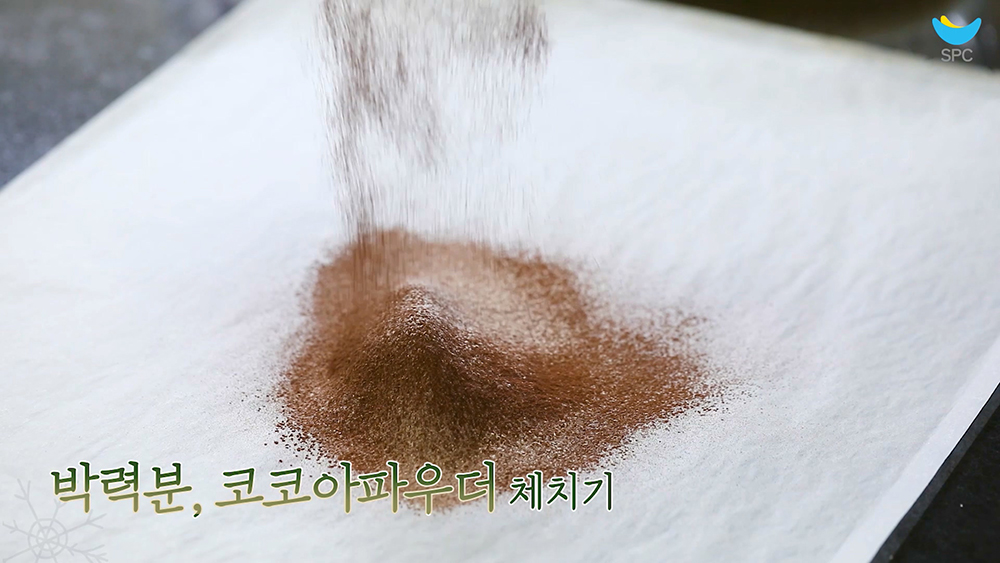 2. 박력분과 코코아파우더를 체쳐주세요