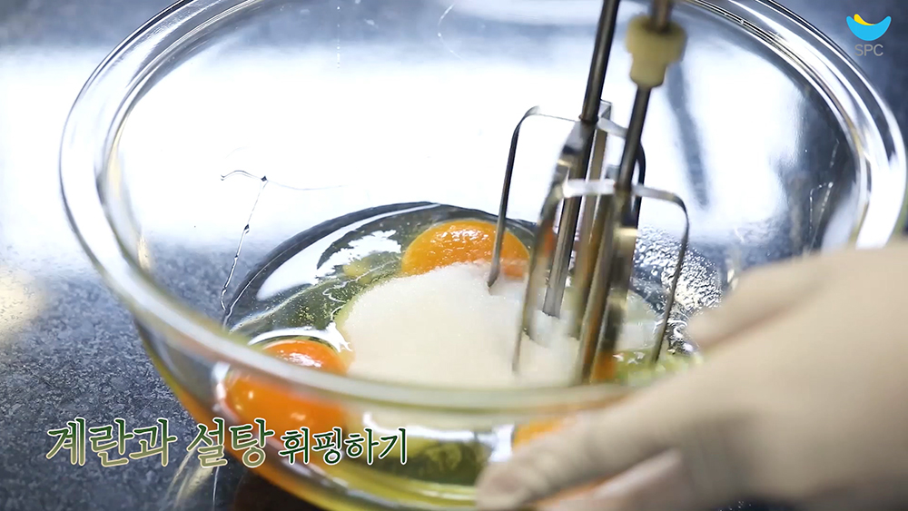 3. 계란과 설탕을 휘핑해주세요