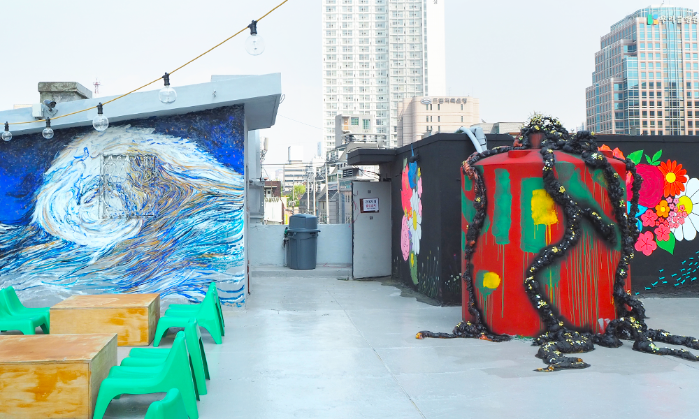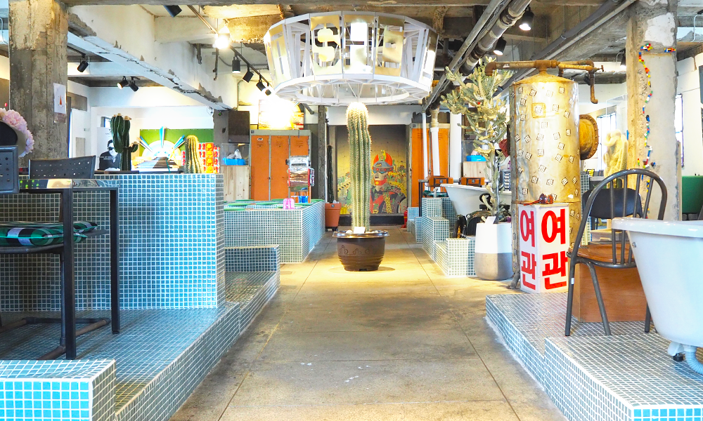 대구 중구 문화동에는 오래된 여관과 목욕탕을 리모델링해 만든 카페겸 문화공간이 있습니다. 최근 SNS에서 핫플레이스로 주목받고 있는 문화장이 바로 그 주인공입니다. 40년 된 여관 청수장을 다섯 명의 크리에이터가 모여 전시공간으로 꾸몄습니다. 기존에 있던 욕조와 여관방, 목욕탕 의자와 바가지 등 옛것을 최대한 남기려는 시도가 엿보입니다. 문화장은 각 공간을 아티스트에게 작업실겸 전시공간으로 대여해 주었습니다. 그림, 사진, 그래피티, 인테리어, 설치미술 등 다양한 장르의 전시가 열립니다. 2층 목욕탕, 3층 여관, 4층 루프탑과 옥탑방 등 공간 곳곳이 예술로 채워졌습니다. 마음에 드는 자리에 앉아 차 한 잔 마시며 잠시 쉬어가기에도 좋습니다.